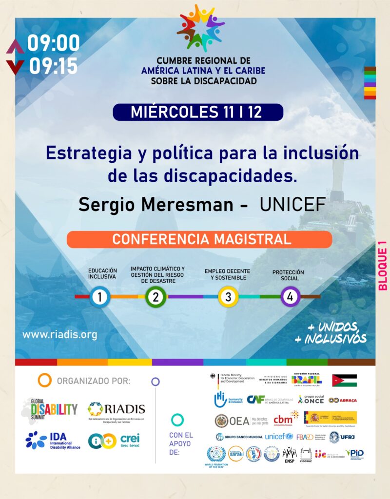 El inicio de la Cumbre sobre Discapacidad en América Latina y el Caribe marca un momento decisivo en nuestro camino hacia la construcción de una sociedad más inclusiva y equitativa. A partir del 9 de diciembre, damos paso a la fase de implementación, un proceso dinámico en el que las ideas, compromisos y estrategias planteadas comienzan a traducirse en acciones concretas y sostenibles. Esta Cumbre Regional es histórica, estamos reuniendo en Rio de Janeiro, Brasil a mas de 15 paises con realidades distintas pero todos convocados en beneficio de las Personas con Discapacidad.